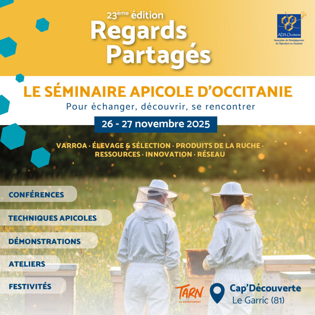 Nous avons le plaisir de vous inviter à participer à la 23ᵉ édition du séminaire apicole « Regards Partagés », un rendez-vous devenu incontournable pour tous les acteurs engagés dans la filière apicole.